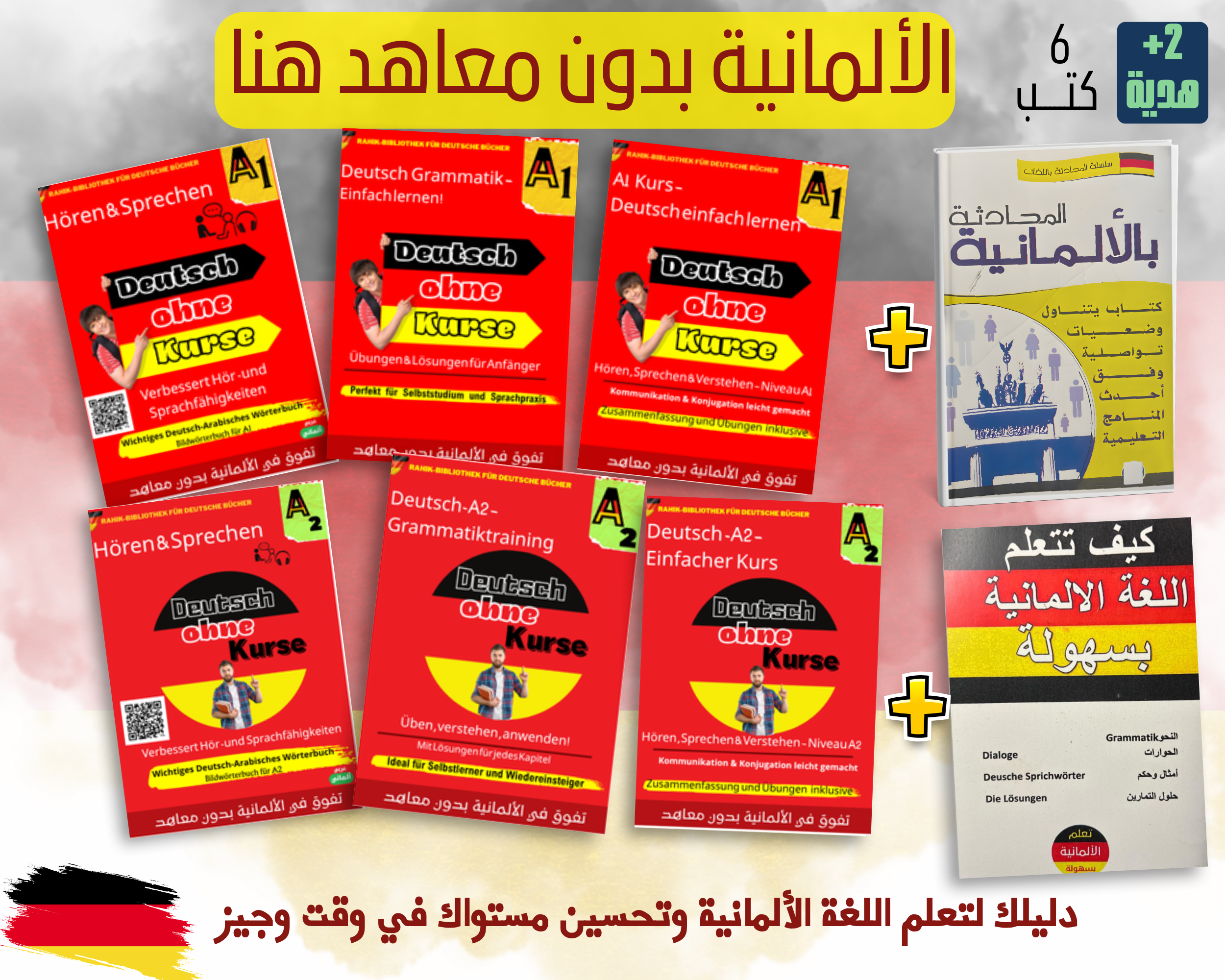 هل تبحث عن طريقة سهلة وممتعة لتعلم اللغة الألمانية من الصفر؟ لقد وصلت إلى المكان الصحيح! مع هذه المجموعة الفريدة المكونة من ٨ كتب شاملة، ستكتسب أساسيات اللغة الألمانية بسرعة وثقة، مهما كان مستواك الحالي.